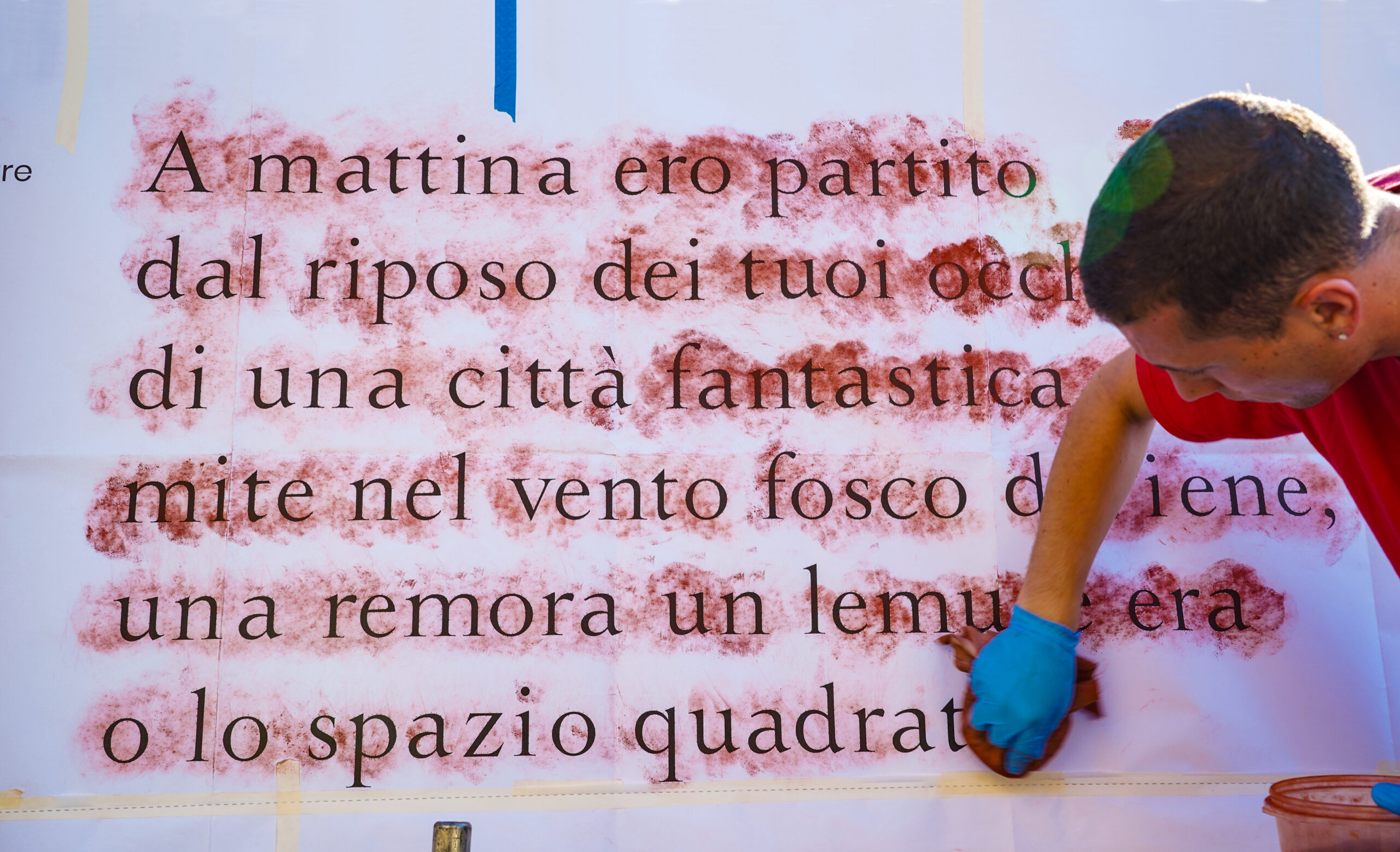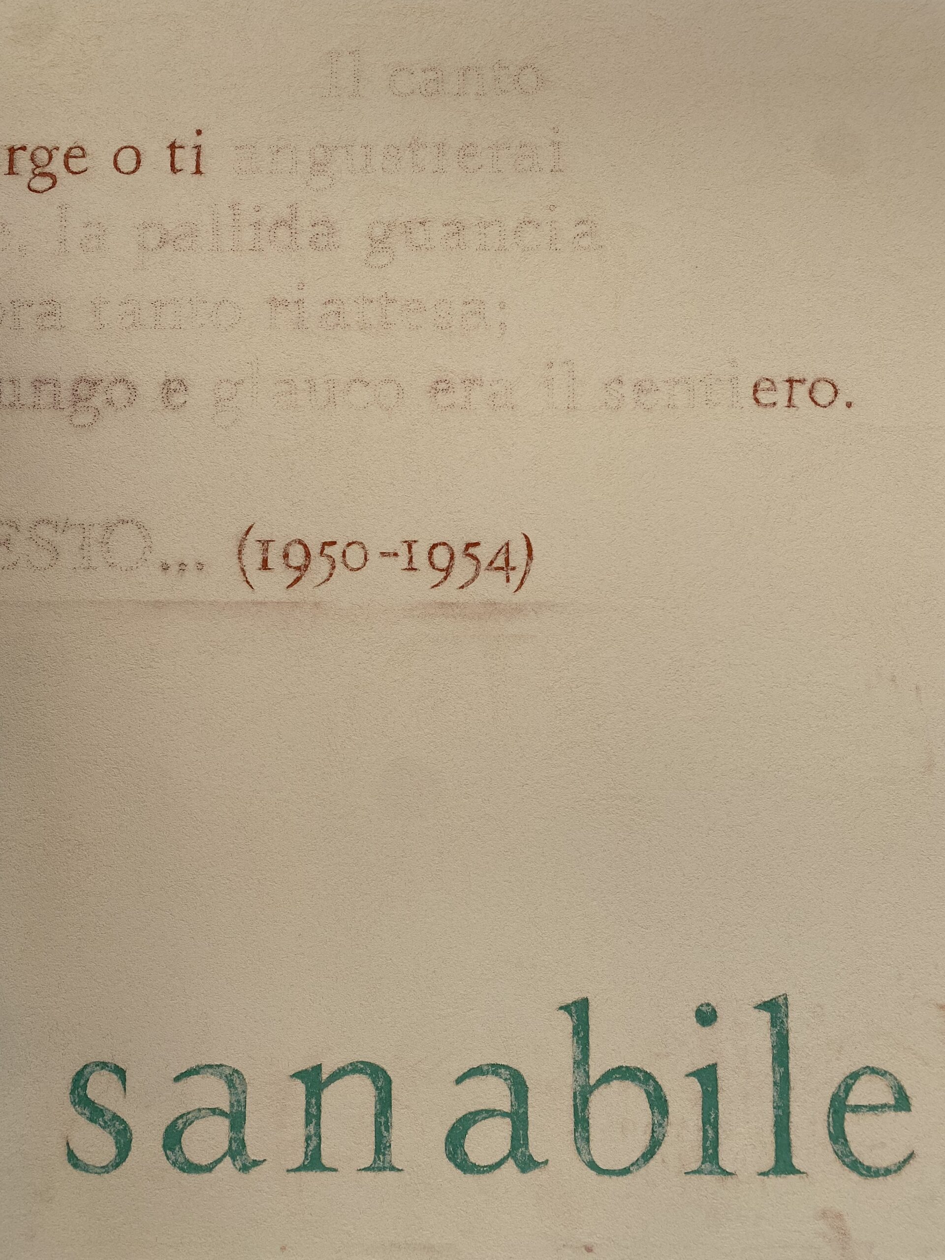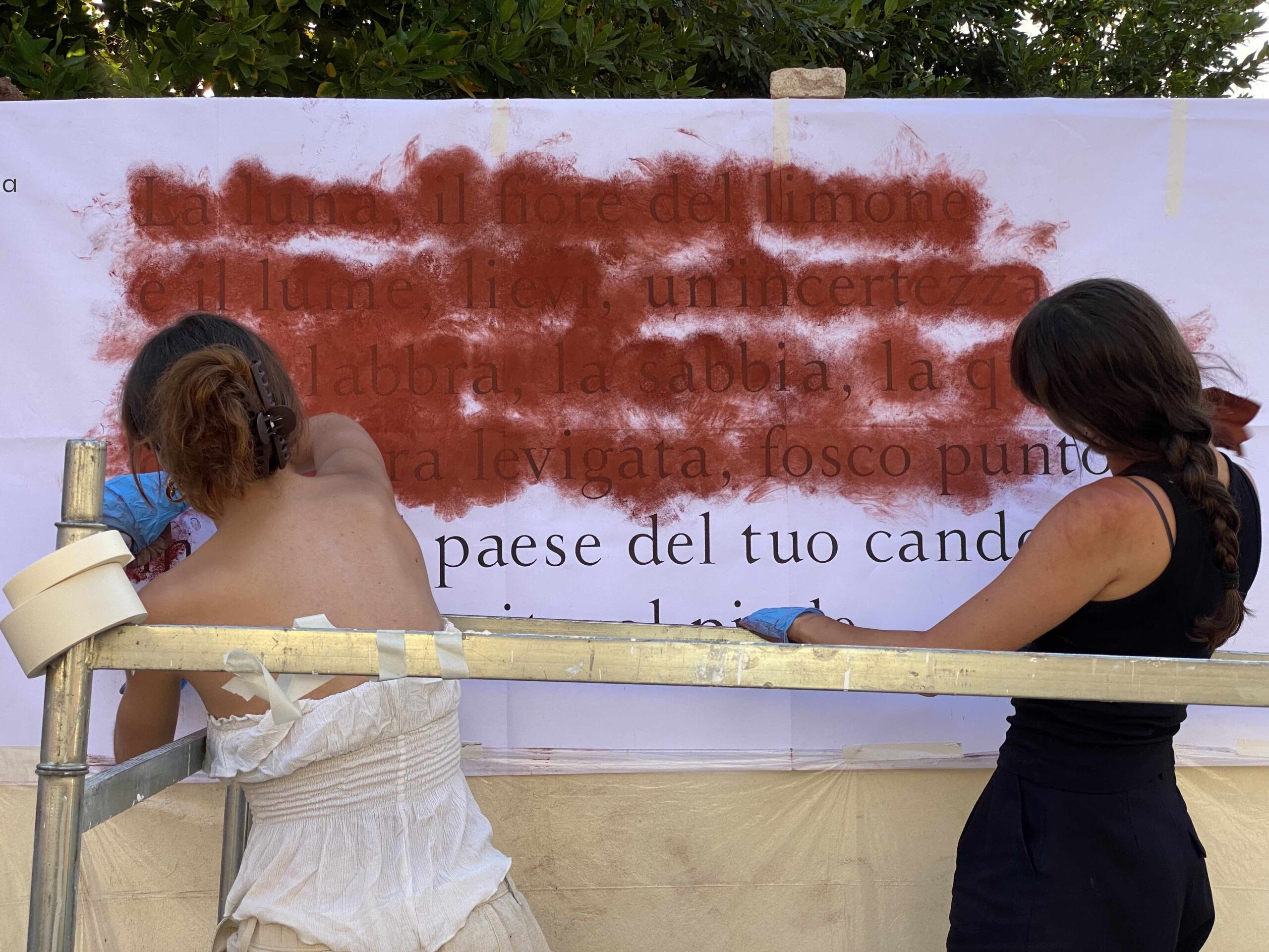 Inaugurazione il 7 agosto 2025, nella giornata di apertura della seconda edizione della Festa della Poesia “Lorenzo Calogero”, alla presenza di Giuseppe Caccavale, del sindaco di Melicuccà Vincenzo Oliverio, del direttore artistico della Festa della Poesia “Lorenzo Calogero” Nino Cannatà, di Marina Valensise (direttrice dell’Istituto Italiano di Cultura di Parigi all’epoca del Viale dei Canti parigino), e di Eleonora ed Elisa Tallone (Alberto Tallone Editore, che hanno donato il carattere con cui è stata composta l’opera). Gli spolveri dell’opera murale in esposizione a Palazzo Capua nell’edizione 2025 della Festa della Poesia.