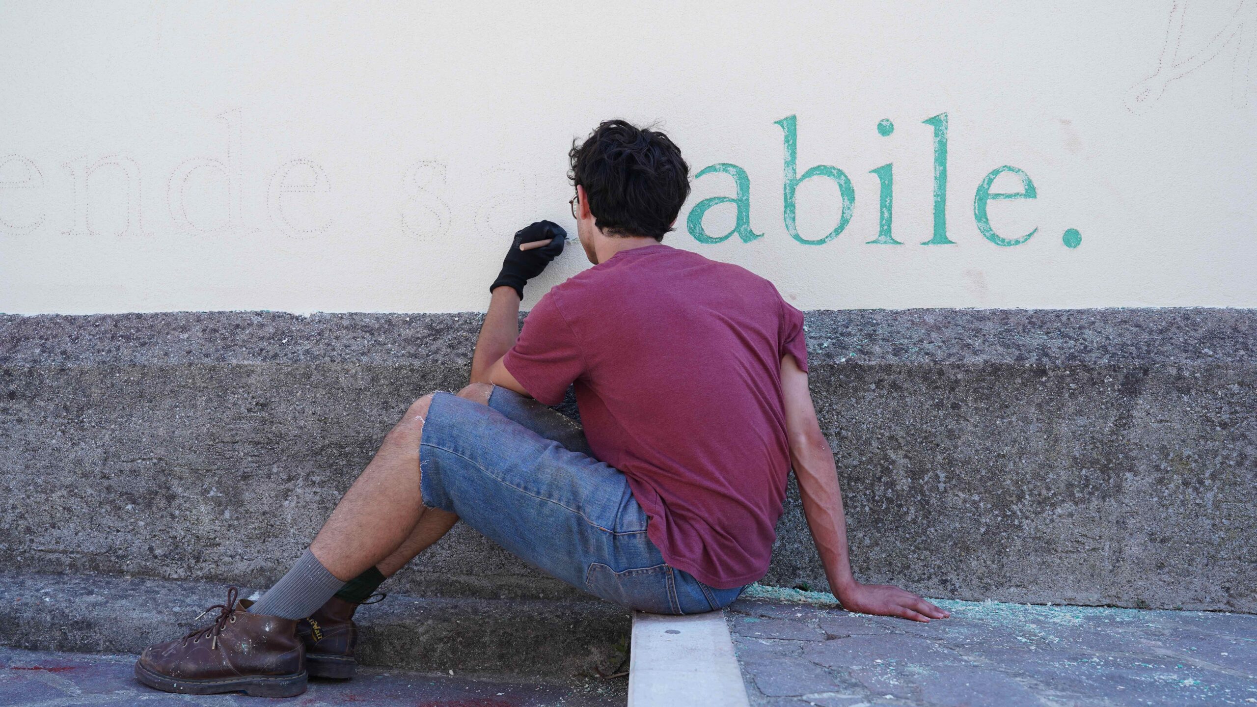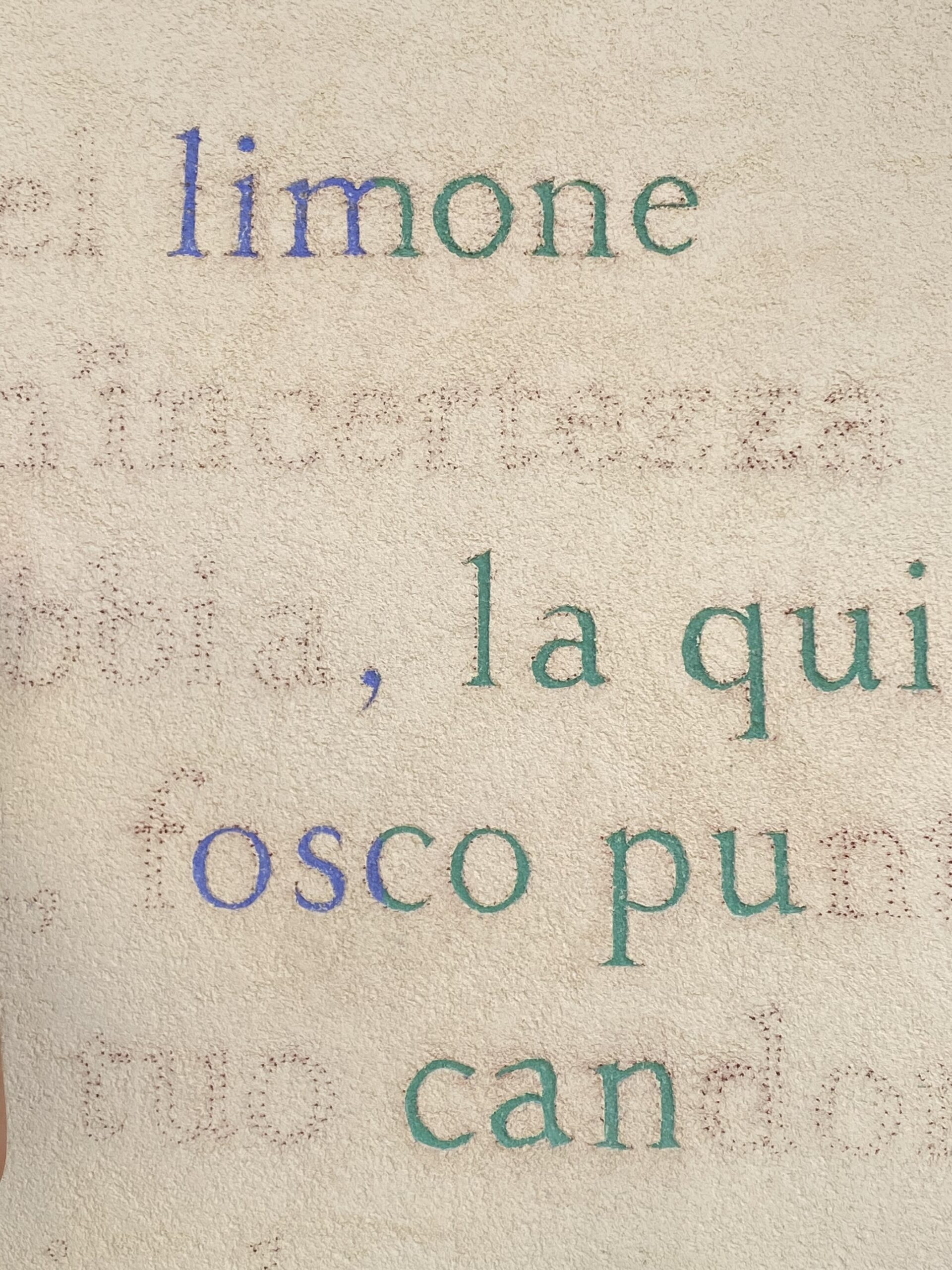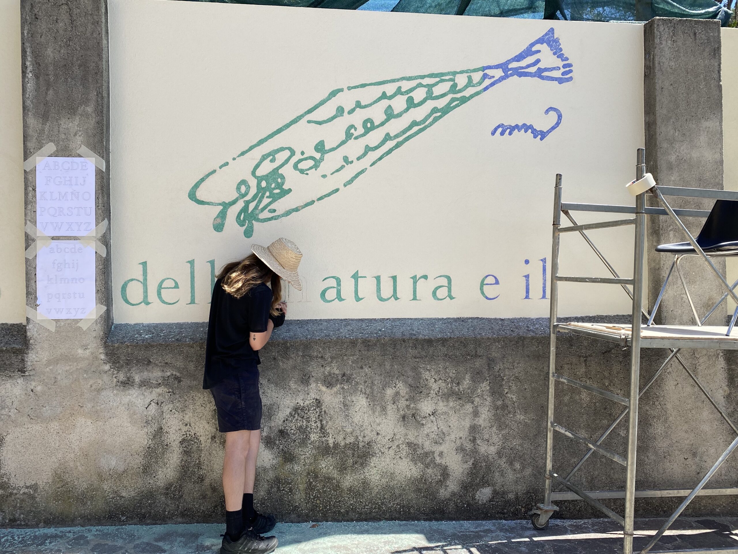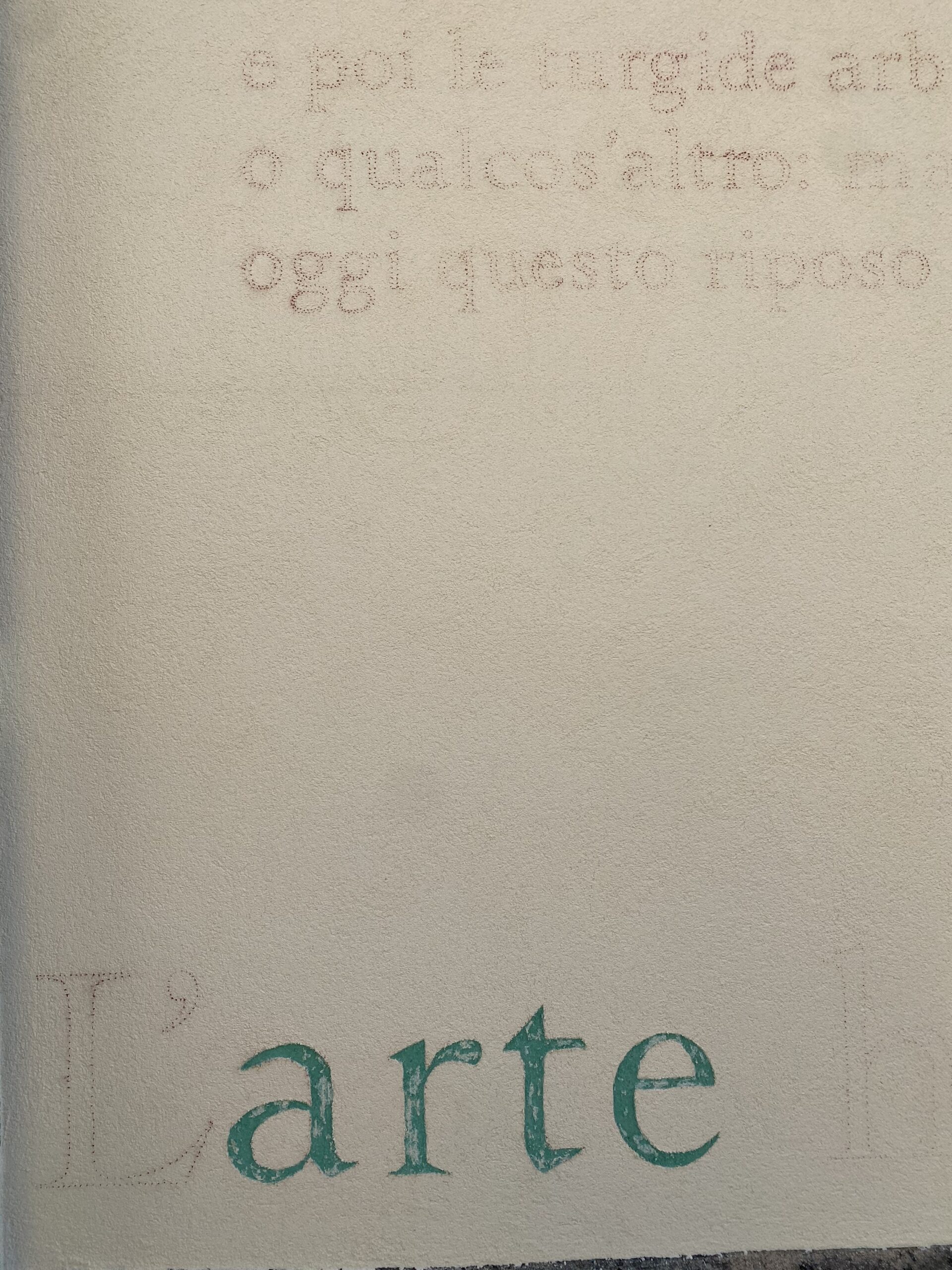 L’opera murale originale è eseguita con la tecnica dello splolvero e sgraffito e raffigura, in questa nuova versione, una preziosa selezione di versi e di disegni tratti dall’antologia di poesie di Lorenzo Calogero Un’orchidea ora splende nella mano (edizioni LYRIKS, 2024).