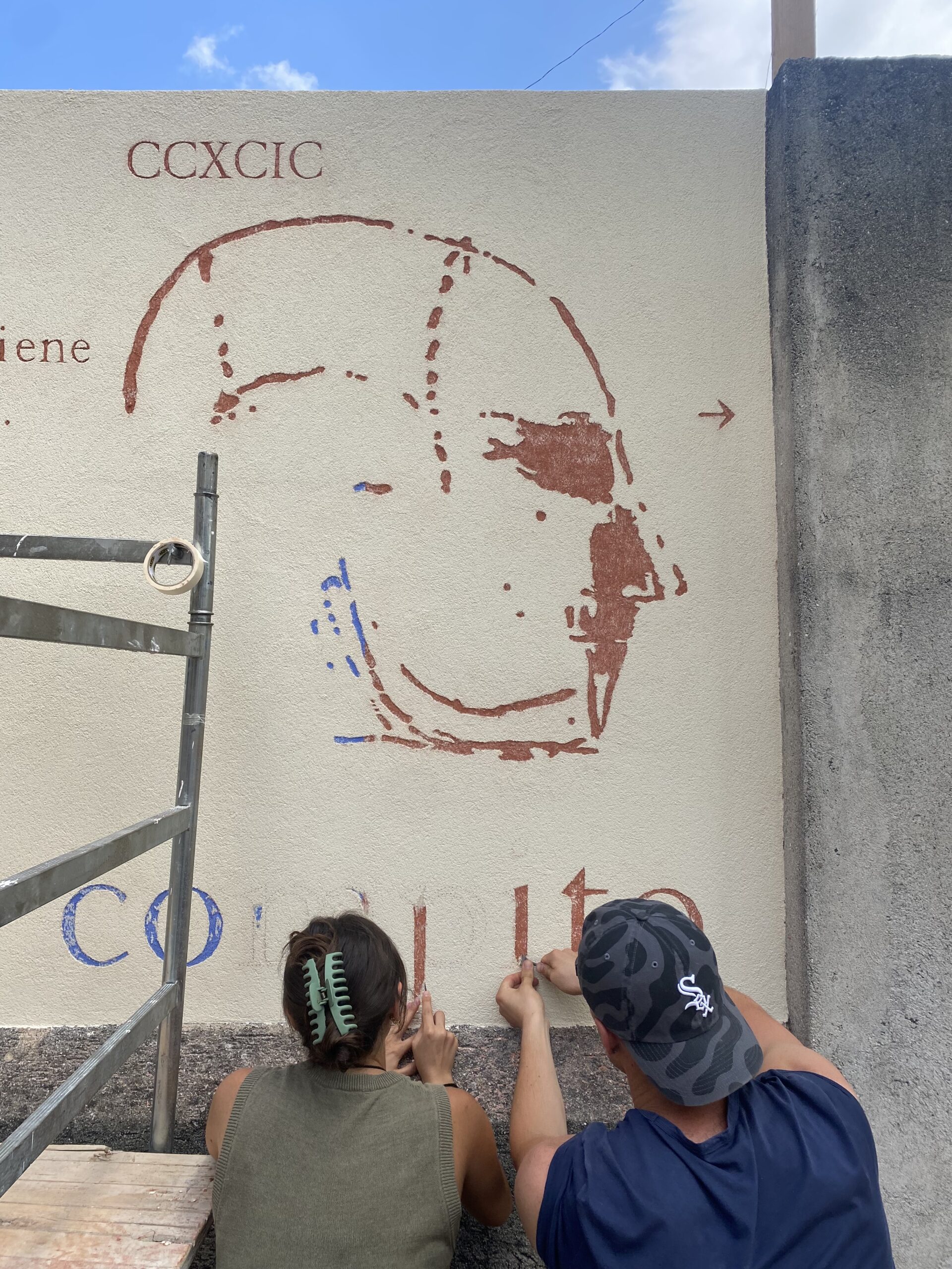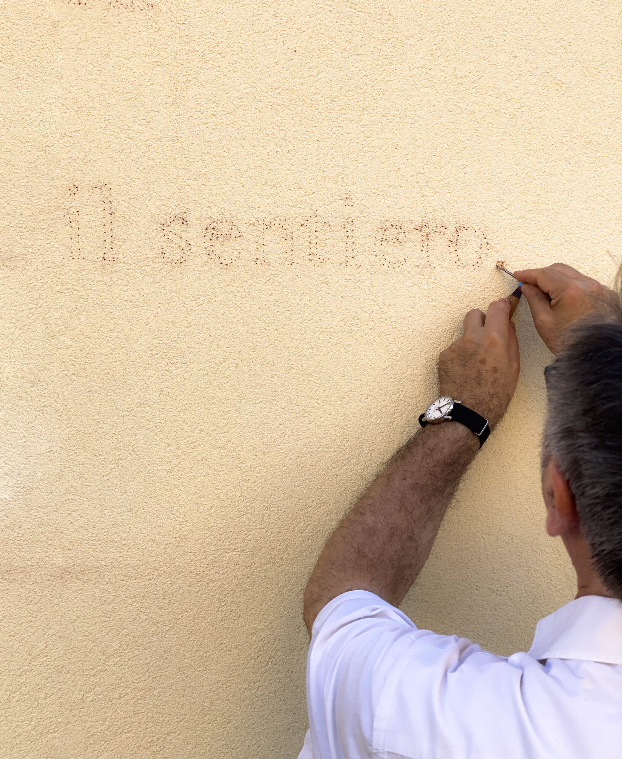 Spolvero e sgraffito su muro preparato